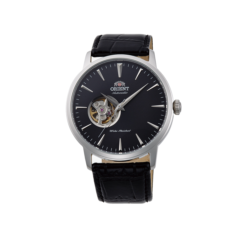 Thuộc dòng sản phẩm Orient, FAG02004B0 là một trong những mẫu đồng hồ ấn tượng nhất của thương hiệu đến từ xứ sở mặt trời mọc. Với đường kính 41mm, cỗ máy của Orient hướng tới những người chơi có cổ tay trung bình hoặc yêu thích những thiết kế nhỏ gọn. Ô cửa sổ lộ tim ở góc 9h giúp hãng khoe được bộ máy cơ khí in-house đầy tinh xảo. Bộ kim Dauphine quen thuộc kết hợp hoàn hảo với cọc số dạng vạch màu bạc khiến chiếc đồng hồ trông thanh lịch và ấn tượng hơn. FAG02004B0 là phiên bản phối màu mặt đen đồng bộ với dây da tạo nên sự tương phản với phần vỏ núm cũng như các chi tiết trên mặt số. Mẫu đồng hồ này được Orient trang bị bộ máy Cal.F6T22 với 22 chân kính cùng chức năng lên cót tay. Ngoài ra, FAG02004B0 còn có kính cứng chịu lực, mặt đáy lộ giúp quan sát bộ máy bên trong, vỏ thép không gỉ cùng độ chịu nước lên đến 50m.