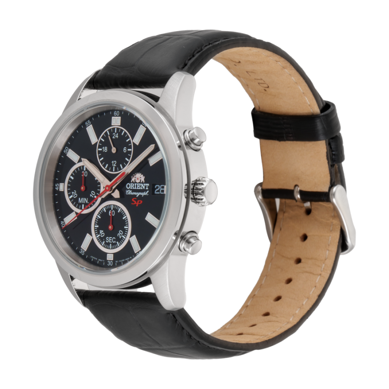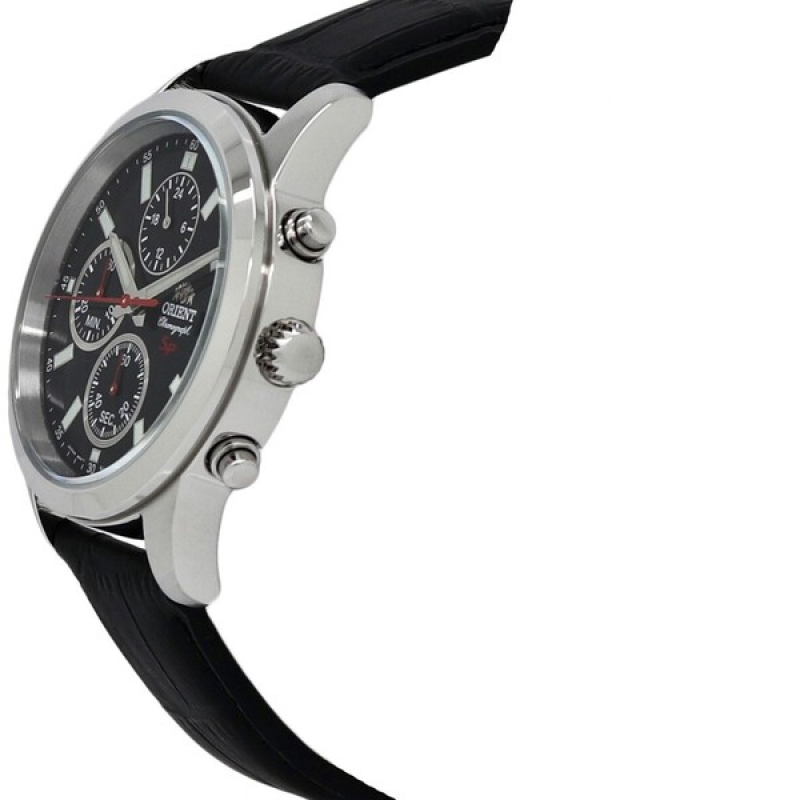 Thuộc dòng sản phẩm Orient, FKU00004B0 là một trong những mô đen thể thao rất được yêu thích của hãng đồng hồ xứ sở mặt trời mọc. Với ngoại hình vừa lịch lãm vừa nam tính, cỗ máy của Orient thực sự thu hút mọi sự chú ý ngay từ cái nhìn đầu tiên. FKU00004B0 sở hữu mặt số màu đen đồng bộ với dây da cùng đường kính 42mm phù hợp với những người chơi có cổ tay trung bình. Bộ kim bút chì và cọc số dạng vạch màu trắng kết hợp thêm phần vỏ, núm màu bạc cùng điểm nhấn là kim giây, kim Chrono màu đỏ tạo nên một thiết kế đầy nổi bật và ấn tượng. Mô đen này được Orient trang bị bộ máy điện tử Cal.RMC00 cùng chức năng Chronograph. Ngoài ra, FKU00004B0 còn có kính cứng chịu lực, vỏ thép không gỉ, dây da cùng độ chịu nước lên đến 50m.