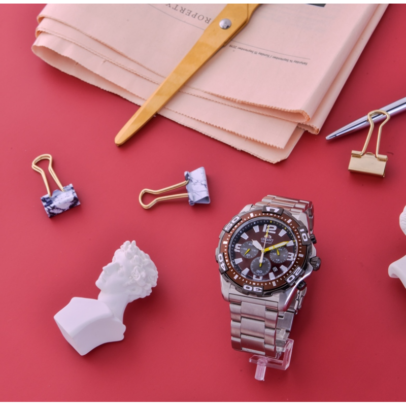 Thuộc dòng sản phẩm Orient, FTW05002T0 là một trong những mô đen thể thao ấn tượng nhất của hãng đồng hồ xứ sở mặt trời mọc. Với ngoại hình vừa mạnh mẽ vừa sang trọng, cỗ máy của Orient thực sự thu hút mọi sự chú ý ngay từ cái nhìn đầu tiên. FTW05002T0 sở hữu mặt số màu nâu đồng bộ với phần vành bezel, dây kim loại cùng núm bấm màu đen tạo nên một thiết kế đầy nam tính và mạnh mẽ. Bộ kim cùng mặt số phụ được phối xám - vàng kết hợp với bộ cọc số kích thước lớn càng làm tăng thêm vẻ cá tính và khỏe khoắn cho chiếc đồng hồ. FTW05002T0 được Orient trang bị bộ máy điện tử Cal.KFD cùng chức năng Chronograph. Ngoài ra, mẫu đồng hồ này còn có kính cứng chịu lực, vỏ và dây từ thép không gỉ 316L cùng độ chịu nước lên đến 100m.