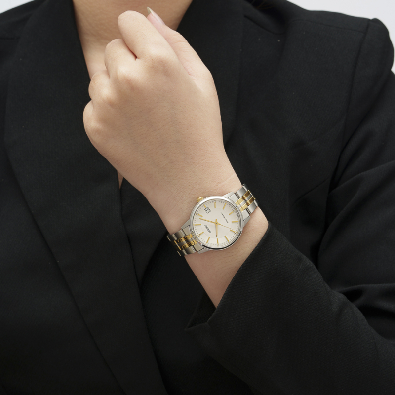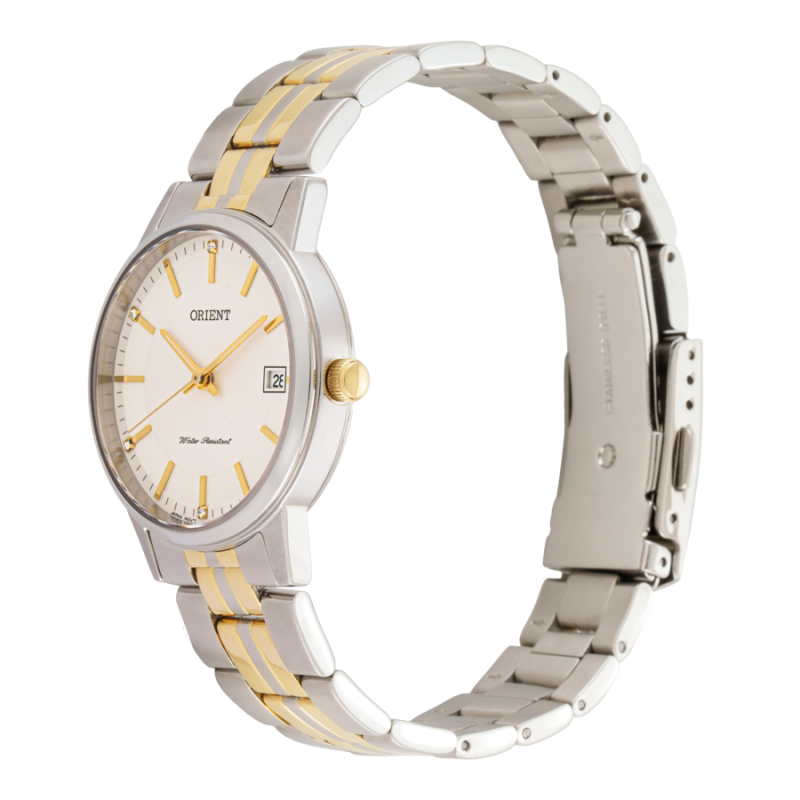 Thuộc dòng sản phẩm Orient, FUNG7002W0 là một trong những mẫu đồng hồ điện tử đầy ấn tượng của thương hiệu đến từ xứ sở mặt trời mọc. Với ngoại hình thanh lịch và sang trọng, cỗ máy của Orient thực sự cuốn hút ngay từ cái nhìn đầu tiên. FUNG7002W0 sở hữu mặt số đường kính 32mm màu trắng thanh thoát. Bộ kim và cọc số mạ vàng đồng bộ với phần núm cùng dây kim loại demi tạo nên một thiết kế đơn giản mà vẫn cực kỳ thu hút. Ô lịch ngày như thường lệ được đặt ở góc 3h. FUNG7002W0 được Orient trang bị bộ máy Cal.HT711 cùng kính sapphire chống xước. Ngoài ra, mẫu đồng hồ này còn có vỏ và dây từ thép không gỉ cùng độ chịu nước lên đến 50m.