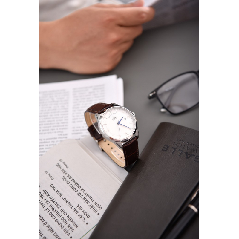 Thuộc dòng sản phẩm Orient, RA-AX0008S0HB là một trong những mẫu đồng hồ rất được yêu thích của thương hiệu đến từ xứ sở mặt trời mọc. Với ngoại hình đầy cổ điển và lịch lãm, cỗ máy của Orient thực sự thu hút mọi sự chú ý ngay từ cái nhìn đầu tiên. RA-AX0008S0HB sở hữu mặt số đường kính 40.8mm màu trắng thanh lịch. Ô lịch ngày đặt chỉn chu ở góc 3h quen thuộc trong khi lịch thứ được thiết kế dạng vòng cung ở vị trí 12h. Bộ kim thanh mảnh mạ xanh đầy nổi bật bên cạnh phần cọc số, vỏ núm màu bạc cùng dây da nâu trẻ trung. RA-AX0008S0HB được trang bị bộ máy Cal.F6E22 với 22 chân kính cùng khả năng lên cót tay. Ngoài ra, mẫu đồng hồ này còn có mặt sau lộ máy, kính cứng chịu lực, độ trữ cót 40h cùng độ chịu nước 100m.