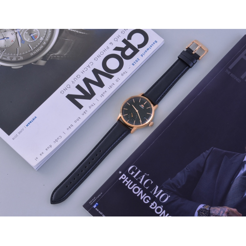 Thuộc dòng sản phẩm Orient, RA-SP0003B10B là một trong những mẫu đồng hồ được ưa chuộng nhất của hãng đồng hồ xứ sở mặt trời mọc. Với ngoại hình vừa đơn giản vừa lịch sự, cỗ máy của Orient thực sự thu hút mọi sự chú ý ngay từ cái nhìn đầu tiên. RA-SP0003B10B sở hữu mặt số 39mm màu đen mạnh mẽ đồng bộ với dây da. Bộ kim được chế tác dạng dài, mảnh và mạ màu vàng hồng ton-sur-ton với cọc số và vỏ núm tạo nên thiết kế lịch lãm, sang trọng và thời thượng. Kim rốn chỉ giây được đặt ở vị trí 6h trong khi ô lịch ngày được để ngay ngắn ở góc 3h quen thuộc. RA-SP0003B10B được Orient trang bị bộ máy điện tử Cal.VL582, kính cứng chịu lực, vỏ thép không gỉ cùng độ chịu nước lên đến 50m.