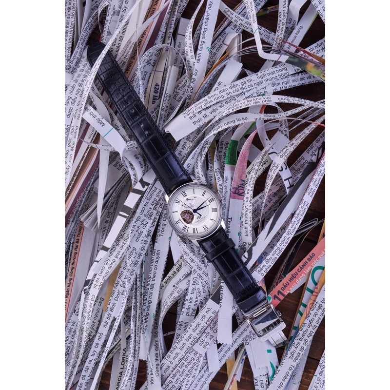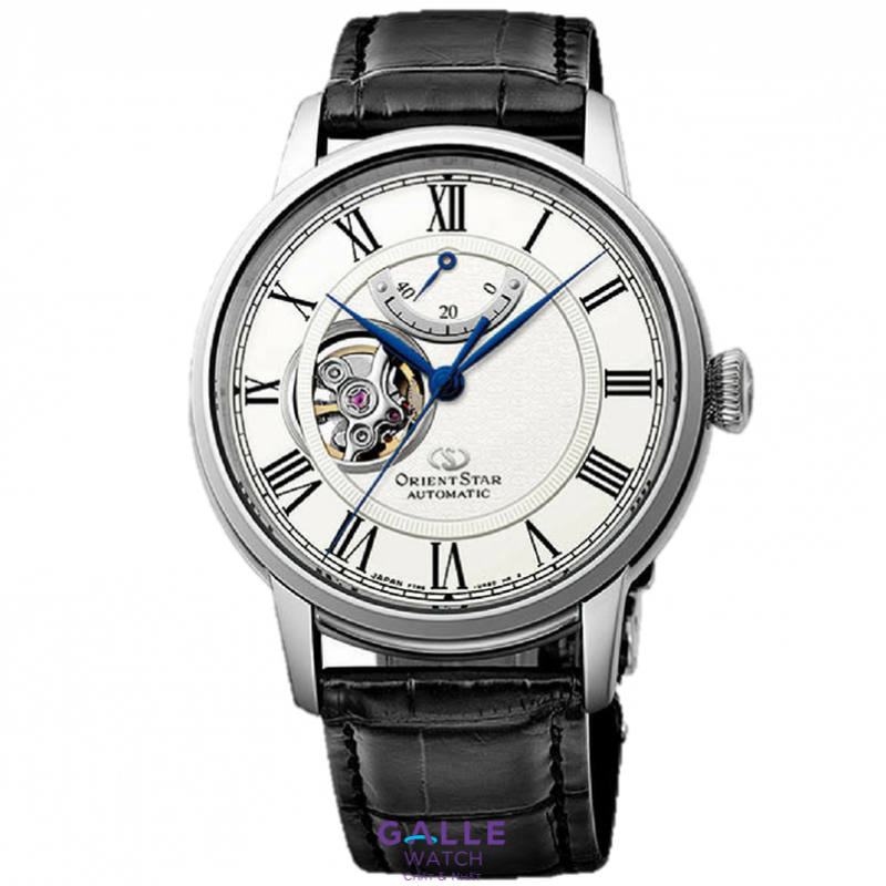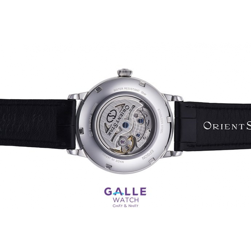 Thuộc dòng sản phẩm Orient Star, RE-HH0001S00B là một trong những mô đen bán chạy nhất của Orient. Với kết cấu lộ tim và mặt đồng hồ phụ đo năng lượng, Orient vừa khoe được cỗ máy cơ khí in-house do hãng tự sản xuất ở vị trí 9h vừa tạo nên ấn tượng về thiết kế cao cấp vốn thường thấy ở những hãng đồng hồ Thụy Sỹ danh tiếng. Đồng thời, RE-HH0001S00B còn ghi điểm với vẻ ngoài đầy thanh lịch nhờ tông trắng chủ đạo của mặt số. Điểm nhấn đến từ bộ kim màu xanh dương đầy nổi bật kết hợp với cọc số La Mã đậm chất cổ điển tạo nên một tuyệt tác nghệ thuật trên cổ tay. Mẫu Orient Star này được nhà sản xuất ưu ái trang bị bộ máy Cal.F7R62 đầy mạnh mẽ với 22 chân kính, chức năng lên cót tay và trữ cót lên đến 40h. Ngoài ra, RE-HH0001S00B cũng có kính sapphire chống phản quang, mặt đáy trong suốt giúp quan sát bộ máy bên trong, vỏ thép không gỉ 316L, dây da cá sấu cùng độ chịu nước 50m.
