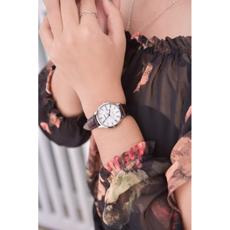 Thuộc dòng sản phẩm Orient, RF-QA0008S10B là một trong những mẫu đồng hồ nữ được yêu thích nhất của hãng đồng hồ xứ sở mặt trời mọc. Với ngoại hình vừa đơn giản vừa lịch sự, cỗ máy của Orient thực sự thu hút mọi sự chú ý ngay từ cái nhìn đầu tiên. RF-QA0008S10B sở hữu mặt số 30mm màu trắng thanh lịch. Bộ kim đầu vuông màu đen đồng bộ với cọc số La Mã và dây da nâu tạo nên một thiết kế cổ điển mà vẫn trẻ trung. RF-QA0008S10B được Orient trang bị bộ máy điện tử Cal.VL321, kính cứng chịu lực cùng độ chịu nước 30m.