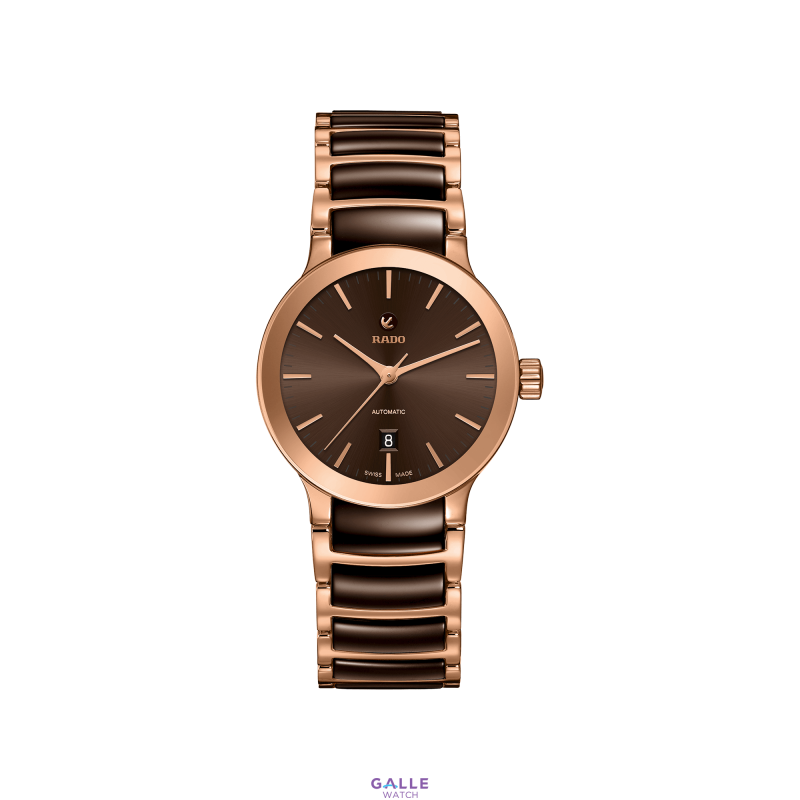 R30183302 là mẫu đồng hồ dành cho nữ giới nằm trong dòng sản phẩm Centrix Automatic của Rado. Ấn tượng đặc biệt mà R30183302 mang tới cho người nhìn chắc chắn nằm ở bộ vỏ và dây đeo màu nâu và vàng hồng thời thượng với sự kết hợp của hai chất liệu thép không gỉ và ceramic công nghệ cao. Nhờ sự kết hợp này, R30183302 không chỉ sở hữu vẻ ngoài bóng bẩy, đẹp mắt mà còn có khả năng chống xước và chịu va đập cực tốt. Dial của R30183302 được chế tác đơn giản với bộ kim và cọc số dạng vạch.