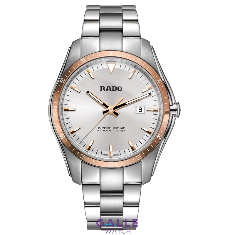 Nằm trong dòng sản phẩm Hyperchrome, R32502103 là mẫu đồng hồ dành cho phái mạnh với ngoại hình năng động, bóng bẩy và khỏe khoắn. Rado mang tới cho người đeo phần viền bezel với màu vàng hồng, nổi bật trên một tổng thể mang sắc bạc thanh lịch. Phần bezel này là sự kết hợp giữa ceramic cao cấp với thép không gỉ 316L. Nhờ công nghệ Ceramos, hai vật liệu này được gắn với nhau thành một khối thống nhất, mang tới sự bền bỉ và mạnh mẽ khi sử dụng. Dial của R32502103 mang chất thể thao nhưng không hề thô kệch. Các chi tiết như cọc số, bộ kim đều được làm vừa phải và được phủ dạ quang hỗ trợ quan sát thời gian trong môi trường thiếu sáng. Mức chịu nước của R32502103 là 100m, kết hợp với kính sapphire mang lại sự an tâm cho quý ông trong mọi điều kiện sử dụng.