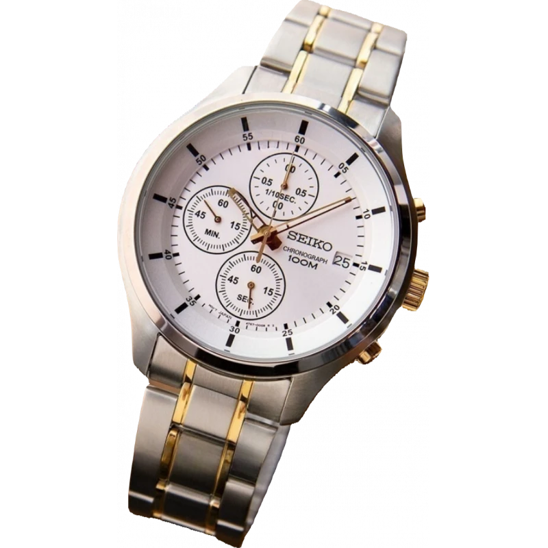 Chiếc đồng hồ Seiko Chronograph SKS541P1 được thiết kế với một phong cách thể thao hoàn toàn mới, trẻ trung và hiện đại. Mang hình hài của một chiếc đồng hồ bấm giờ với 3 núm chỉnh giờ, chiếc SKS541P1 sở hữu mức độ chịu nước ấn tượng lên tới 10ATM. Qua đó, chủ nhân của chiếc đồng hồ thậm chí vừa bơi vừa đeo đồng hồ vẫn sẽ không gặp bất kỳ vấn đề gì. Toàn bộ vỏ của chiếc đồng hồ được làm từ thép chống gỉ 316L cao cấp, mạ vàng PVD phong cách pha trộn demi. Phía bên trong là một mặt số màu trắng trẻ trung với 6 cây kim, các đồng hồ con được xếp theo chiều dọc của mặt số đồng hồ. Chức năng bấm giờ thể thao của chiếc SKS541P1 cho phép người dùng đo được chính xác lên đến 1/10 giây.