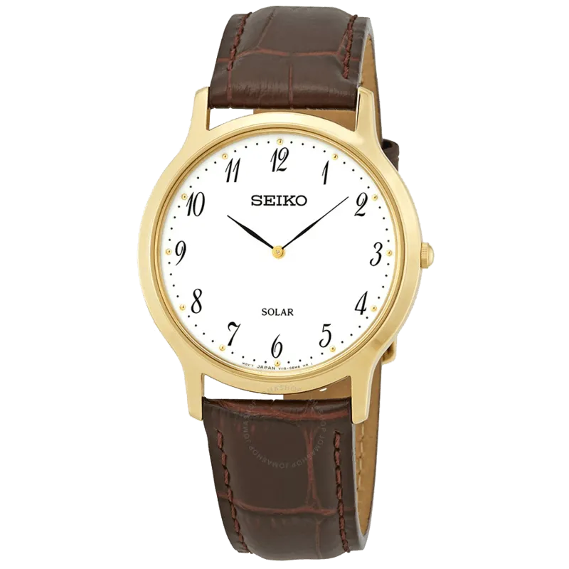 Một trong số những chiếc đồng hồ có kiểu dáng thời thượng và chuẩn mực nhất đến từ nhà sản xuất Nhật Bản đó là chiếc SUP860P1 với lớp vỏ mạ vàng kết hợp cùng dây da nâu vân cá sấu mang tới sự sang trọng và lịch sự. Mặt số đơn giản mà tinh tế với các cọc số Arabic. Với kiểu dáng này, chiếc đồng hồ SUP860P1 có thể dễ dàng kết hợp với nhiều phong cách ăn mặc khác nhau.