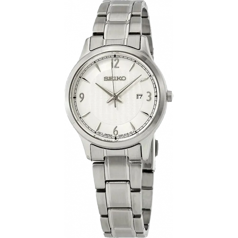 Một trong những mẫu điện tử của Seiko phải kể tới SXDG93P1 với kiểu dáng lịch lãm cùng size mặt phổ thông 28.7 mm, phù hợp với đa số cổ tay phụ nữ Châu Á. Mặt số dễ đọc thời gian với bộ kim và cọc số thanh mảnh tinh tế. Lịch ngày thể hiện qua ổ hiển thị phụ góc 3h. Bao bọc cho mặt số là lớp kính Hardlex.