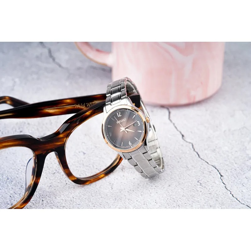 Trong số những sản phẩm đó, không thể không kể tới chiếc đồng hồ thời trang nữ SXDH02P1, sự tỉ mỉ, trau truốt từ những chi tiết nhỏ nhất đã giúp SXDH02P1 được săn đón và ưa chuộng. Đồng hồ được trang bị chất liệu thép không gỉ 316L cao cấp làm vỏ và dây, công nghệ mạ màu PVD ở vành đồng hồ, phần dây là những mắt nối liền mang đến phong cách khỏe khoắn, đầy cá tính. Mặt kính Hardlex bền bỉ chống xước và chống lực bảo vệ cho bộ hiển thị, những họa tiết trong mặt số nổi bật với phần cọc số vạch và bộ kim thanh mảnh nổi bật trên nền tông màu cafe đầy mê hoặc, chi tiết cọc số là sự kết hợp độc đáo giữa cọc số vạch và cọc số học trò cùng bộ kim vát nhọn đặc trưng của Seiko nhằm tạo sự thoáng mắt, thu hút.