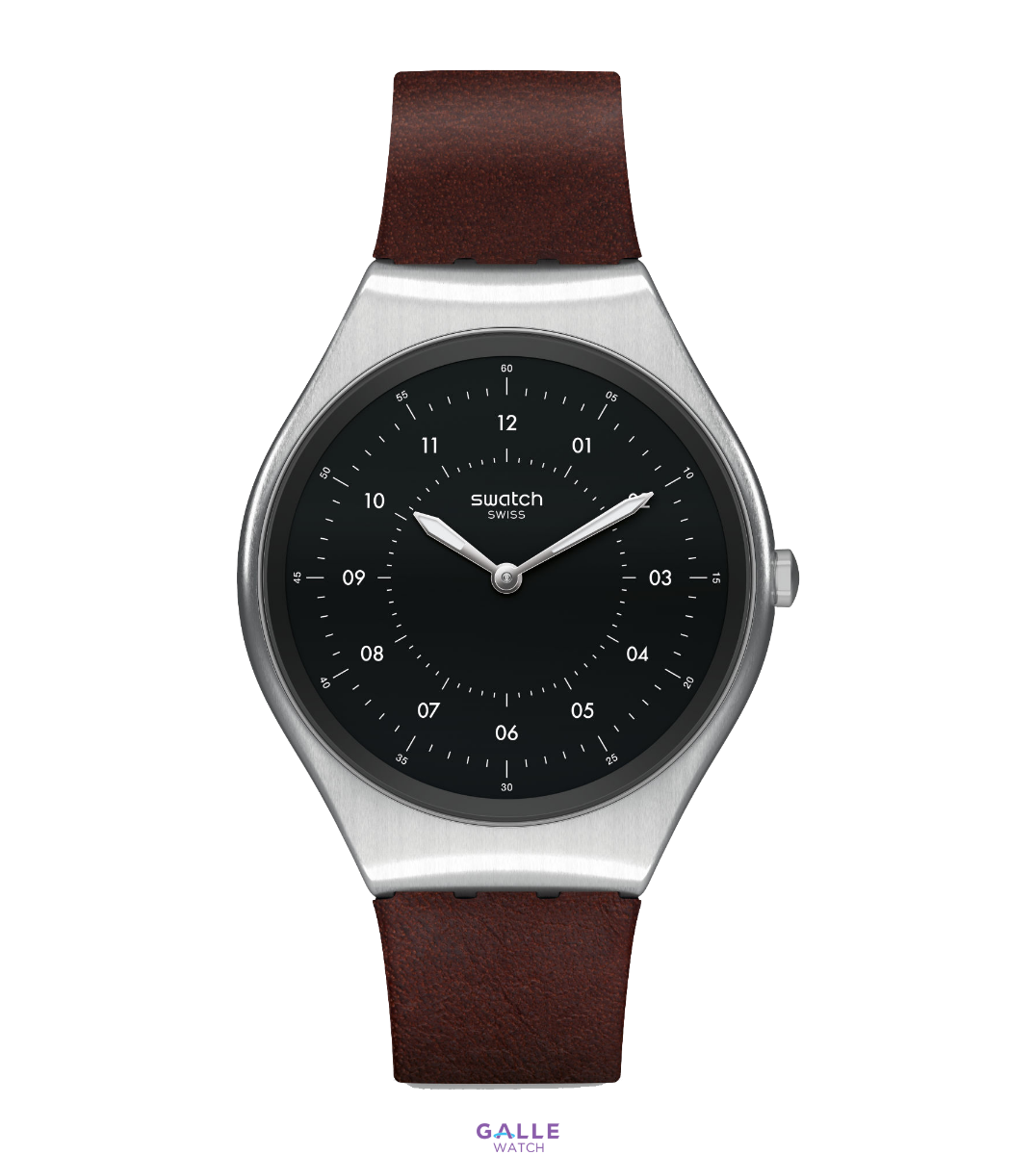 Với lịch sử ra đời thiêng liêng như thế, Swatch luôn là thương hiệu đồng hồ Thụy Sĩ được yêu thích của cộng đồng giới trẻ quốc tế bởi những sản phẩm được sáng tạo dựa trên cảm hứng từ màu sắc của các nhà thiết kế. Không khiến giới trẻ thất vọng, Swatch mang tới mẫu đồng hồ Skinastic SYXS102 mang hình dáng và màu sắc có phần cổ điển. Đồng hồ sở hữu đường kính mặt số 38mm và độ dày chỉ 5.8mm - kích thước phù hợp cho các bạn nam thanh niên cũng như các cô gái cá tính thích đeo đồng hồ oversize. Mặt số được chia ra làm nhiều vòng tròn đồng tâm với vạch giờ và phút đánh số chi tiết, rõ ràng trên nền dial đen. Bộ kim được phủ rãnh dạ quang với tạo hình như thanh kiếm được vuốt nhọn tạo nét mạnh mẽ và khỏe khoắn. Bảo vệ toàn bộ trái tim bộ máy phía bên trong là lớp kính Plexiglass có đặc tính quang học tuyệt vời cùng khả năng chịu lực tốt, trọng lượng nhẹ và độ bền cao cùng bộ khung vỏ chế tác từ thép không gỉ cao cấp. Dây đeo chất liệu da sần màu nâu với móc khóa cài chắc chắn giúp ôm sát cổ tay người đeo. Đồng hồ SYXS102 được trang bị mức độ chống nước là 3 ATM cùng bộ máy swiss quartz hoạt động chính xác, bền bỉ sẽ là sự lựa chọn hoàn hảo cho những người trẻ tuổi, năng động.