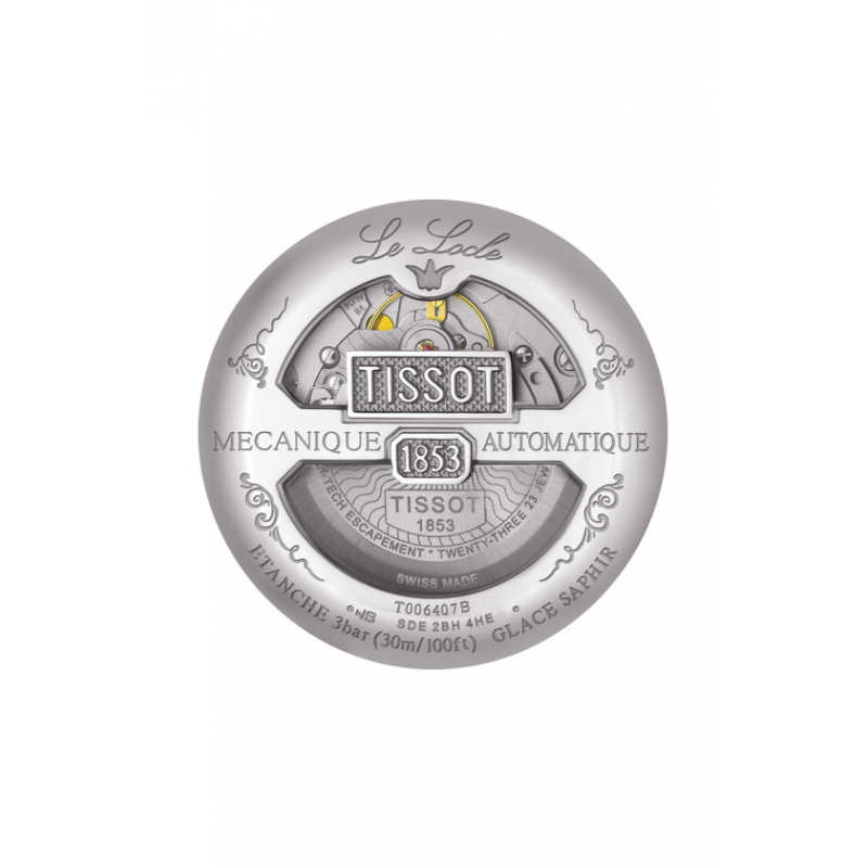 Mặt số của T006.407.16.033.00 có đường kính 39,3mm, vừa vặn với cổ tay phái mạnh Việt. Trên mặt số này, các cọc số được làm dưới dạng số La Mã đem tới vẻ cổ điển và sang trọng cho người đeo. Ở góc 6h của sản phẩm, bạn sẽ nhận thấy 02 dòng chữ quan trọng: Le Locle - biểu thị cho dòng sản phẩm và Powermatic 80 - biểu thị cho khả năng trữ cót lên tới 80 giờ của cỗ máy tự động Thụy Sỹ bên trong của T006.407.16.033.00.