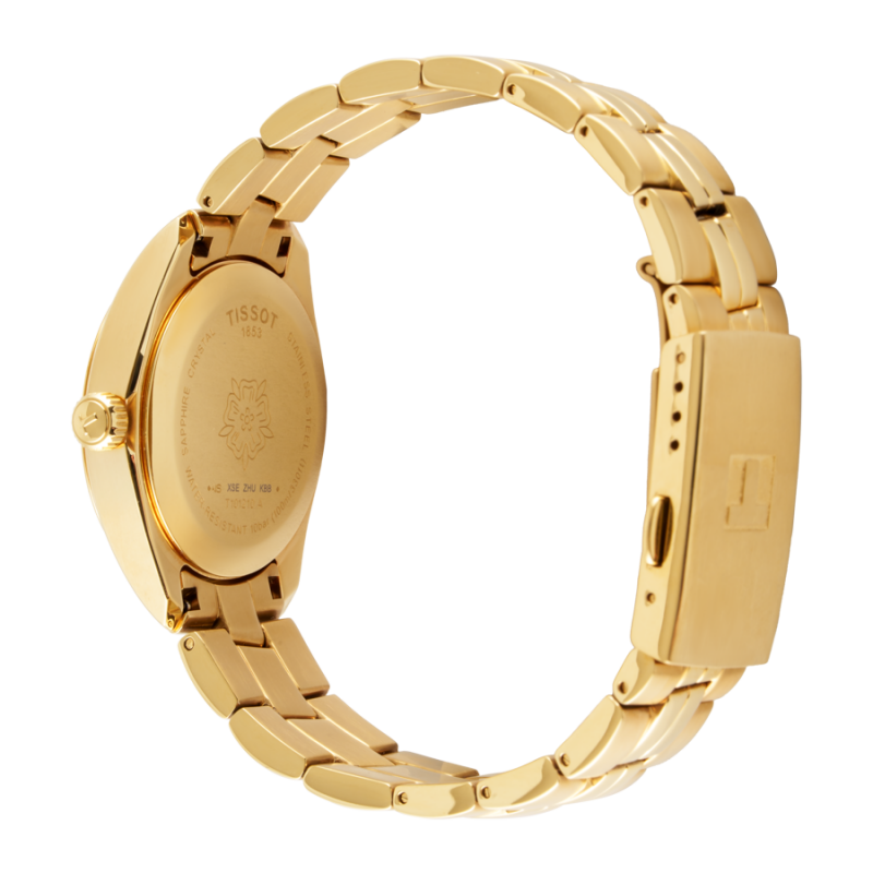 Mức chịu nước của T101.210.33.031.00 là 10 ATM, kết hợp với kính sapphire đem lại sự an tâm cho người dùng.
