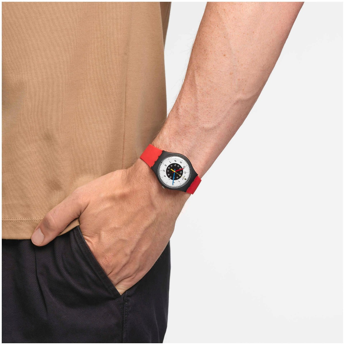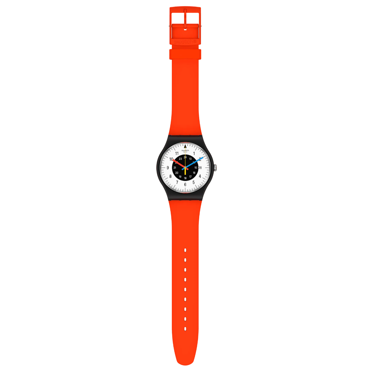 Dây đeo nhựa sinh học và khoá có màu đỏ nổi bật. Đường kính SO32B401 là 41mm, khả năng chịu nước 3ATM. Đặc biệt, SO32B401 với hộp vỏ ấn tượng, vừa giúp bảo quản sản phẩm và vừa là một phụ kiện trang trí độc đáo.