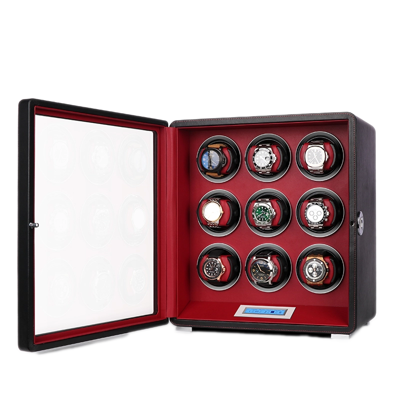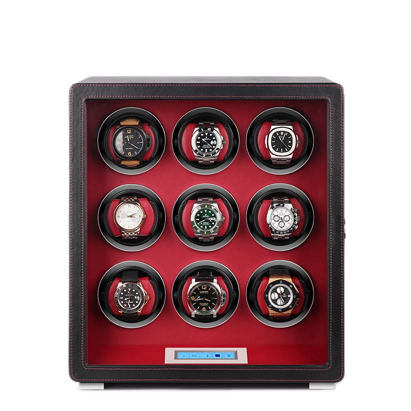 P9BR-F-9-LED-P-FL là mẫu hộp xoay dành cho đồng hồ cơ sở hữu vẻ đẹp sang trọng, lịch lãm với kích thước 355 x 215 x 390 mm. Vỏ hộp được làm từ chất liệu gỗ MDF sơn mài bọc da bắt mắt kết hợp mặt kính acrylic chống lực tốt. Phần lõi bọc nhung cao cấp giúp tăng giá trị thẩm mỹ cùng khả năng chống ẩm ưu việt, P9BR-F-9-LED-P-FL được trang bị tính năng mở hộp bằng cảm ứng vân tay cực kỳ an toàn và tiện dụng. Người dùng có thể dễ dàng cài đặt chức năng này qua bộ tùy chỉnh bên trong hộp.