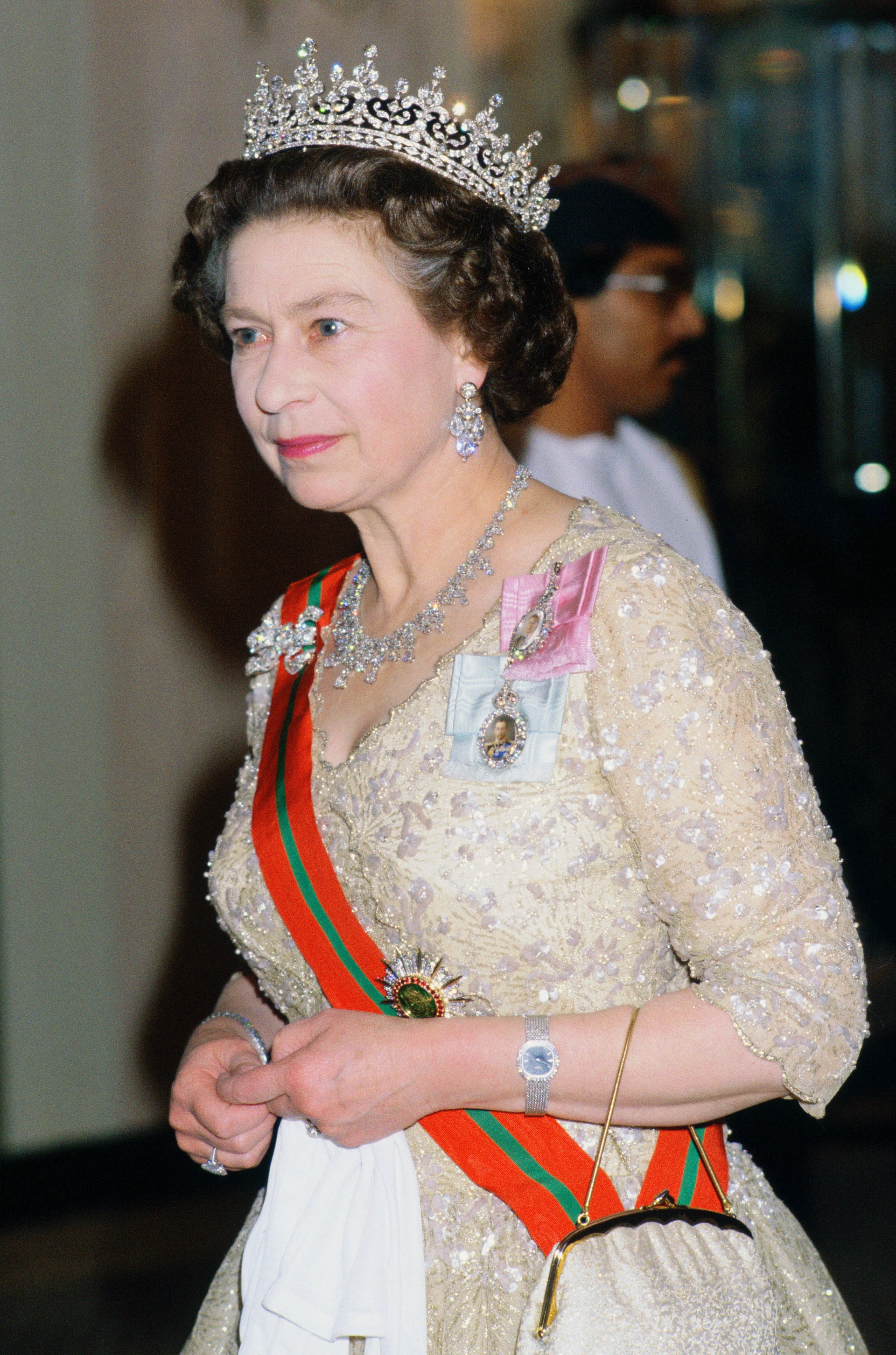 Không thể phủ nhận rằng đồng hồ Patek Philippe ref 4975 / 1G là một tác phẩm của nghệ thuật thủ công thực thụ. Mặt đồng hồ được nạm bằng những viên kim cương cắt hình baguette trên nền khảm trai. Vào năm 2015, Nữ hoàng đã cho mượn chiếc đồng hồ này trong Triển lãm nghệ thuật đồng hồ Patek Philippe tại Phòng trưng bày Saatchi ở London.