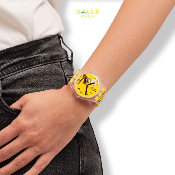 SO29Z101 “Pow Wow” là mẫu đồng hồ hợp tác giữa Swatch và Peanuts lấy cảm hứng từ nhân vật Charlie Brown đáng yêu. Bố mẹ nào muốn mua đồng hồ có họa tiết nhân vật để tạo niềm yêu thích cho bé sẽ rất ưng mẫu này. Với kích thước 41mm, mặt kính nhựa, dây silicone, khả năng chống nước 3 ATM phù hợp cho trẻ lớn hơn hoặc trẻ có cổ tay rộng hơn. Màu sắc và thiết kế mềm mại, nhân vật vui nhộn giúp chiếc đồng hồ vừa thời trang vừa có tính giải trí cao.